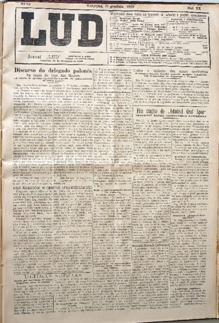 Słowa kluczowe: Prasa ; Brazylia ; Brasil ; Lud ; Curitiba ; Kurytyba ; Paraná ; Lud 1939