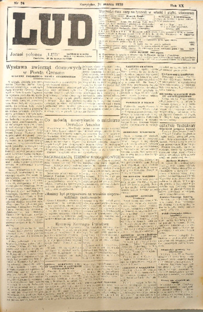 | Słowa kluczowe: | Prasa ; Brazylia ; Brasil ; Lud ; Curitiba ; Kurytyba ; Paraná ; Lud 1939 |