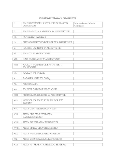 Słowa kluczowe: | Archiwum OO. Franciszkanów ; Coronado ; Argentyna ; Schemat |
