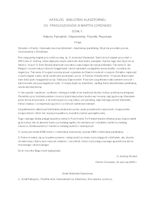 | Kolekcja: | Archiwa > Archiwum OO. Franciszkanów w Martin Coronado - Katalogi Bibliotek |