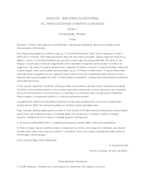 | Kolekcja: | Archiwa > Archiwum OO. Franciszkanów w Martin Coronado - Katalogi Bibliotek |