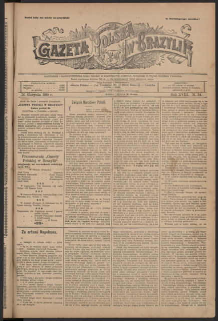 Gazeta Polska w Brazylii, 1910 No. 34 (26 sierpnia)