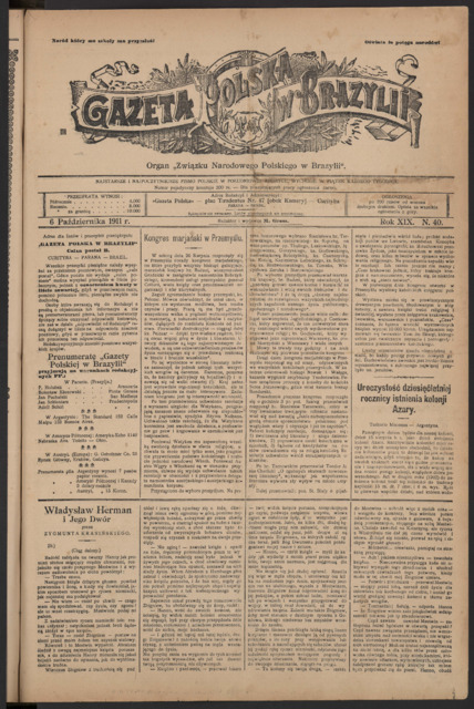 Gazeta Polska w Brazylii, 1911 No. 40 (6 października)