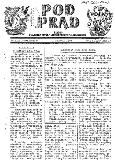 Pod Prąd R. 4 No. 33 /125/ (1 grudnia 1948)