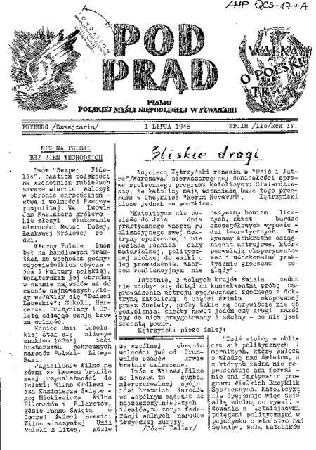 Słowa kluczowe: Fundacja Archivum Helveto-Polonicum ; Fondation Archivum Helveto-Polonicum ; Prasa ; Pod Prąd ; Szwajcaria