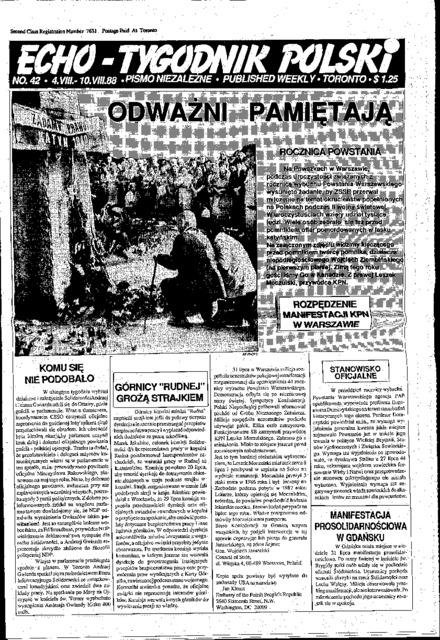 Echo - Tygodnik Polski, 1988 No. 42 (4-10 sierpnia)