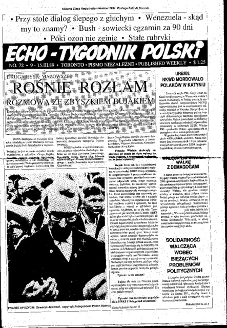 Echo - Tygodnik Polski, 1989 No. '72 (9-15 marca)