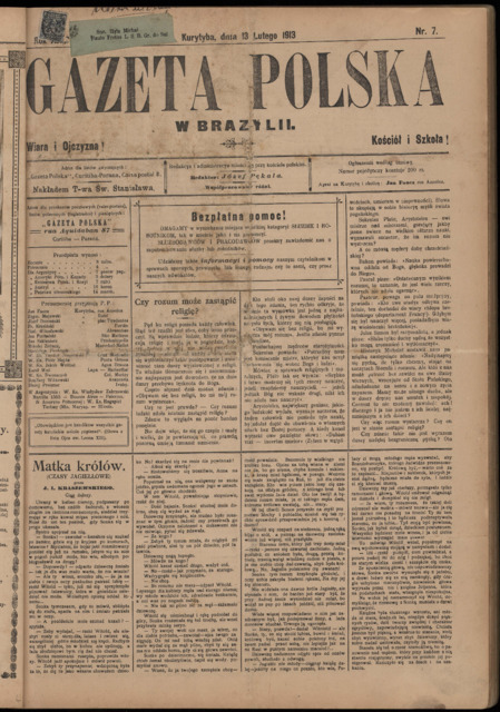Gazeta Polska w Brazylii, 1913 No. '7 (13 lutego)