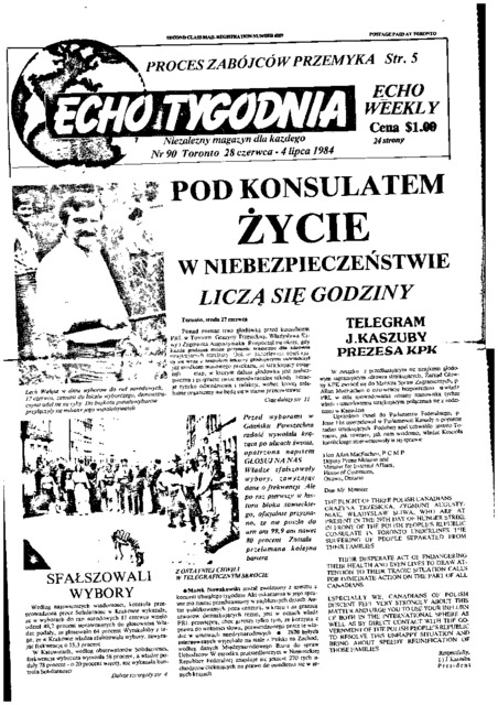 Słowa kluczowe: Prasa ; Kanada ; Toronto ; Echo Tygodnia ; Jacek Adolf ; Grażyna Farmus ; Zbigniew Farmus