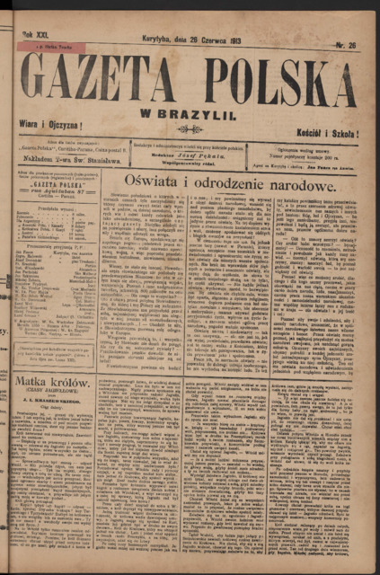 Słowa kluczowe: Prasa ; Brazylia ; Gazeta Polska w Brazylii ; Curitiba ; Kurytyba ; Parana ; Józef Pękala