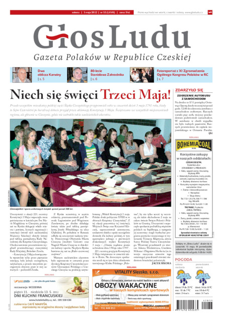 Opis: Gazeta Polaków w Republice Czeskiej. Przy wsparciu finansowym Ministerstwa Kultury RC wydaje Kongres Polaków w RC. Redaktor naczelny: Tomasz Wolff. ISSN 1212-4222.
