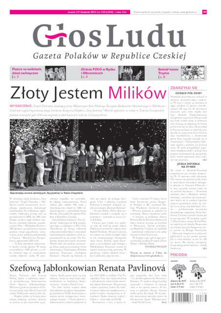 Słowa kluczowe: Prasa ; Czechy ; Czeski Cieszyn ; Głos Ludu ; Tomasz Wolff ; Rada Polaków w Republice Czeskiej ; Kongres Poláků v České Republice