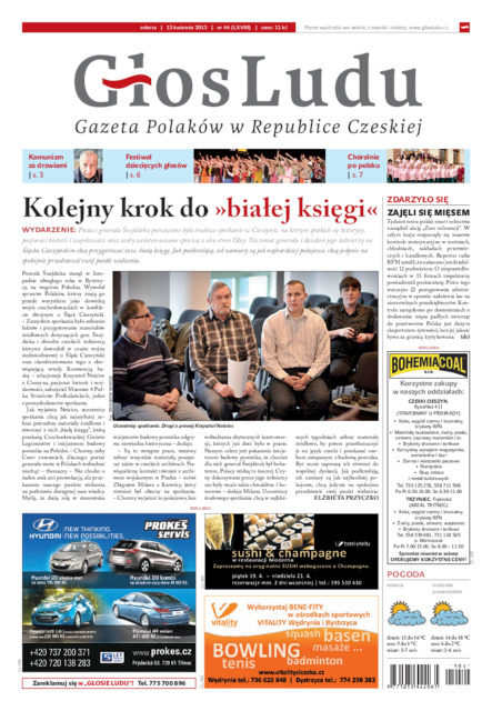 Słowa kluczowe: Prasa ; Czechy ; Czeski Cieszyn ; Głos Ludu ; Tomasz Wolff ; Rada Polaków w Republice Czeskiej ; Kongres Poláků v České Republice