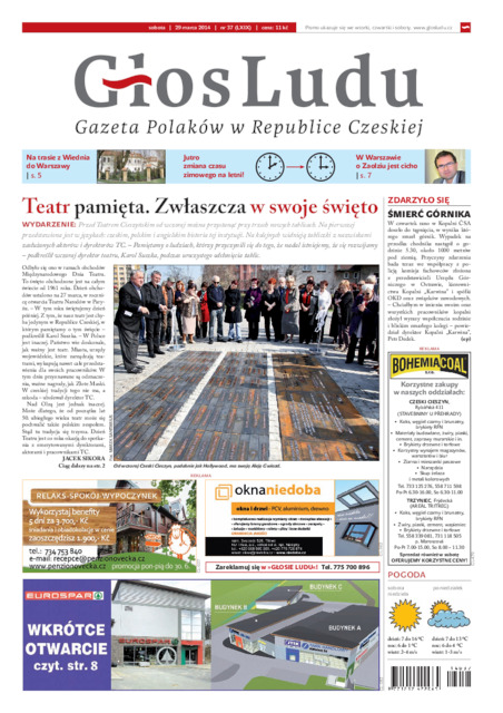 Opis: Gazeta Polaków w Republice Czeskiej. Przy wsparciu finansowym Ministerstwa Kultury RC wydaje Kongres Polaków w RC. Redaktor naczelny: Tomasz Wolff. ISSN 1212-4222.