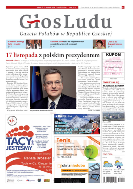 Opis: Gazeta Polaków w Republice Czeskiej. Przy wsparciu finansowym Ministerstwa Kultury RC wydaje Kongres Polaków w RC. Redaktor naczelny: Tomasz Wolff. ISSN 1212-4222.