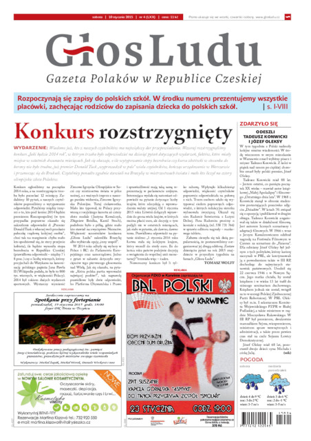 Słowa kluczowe: Prasa ; Czechy ; Czeski Cieszyn ; Głos Ludu ; Tomasz Wolff ; Rada Polaków w Republice Czeskiej ; Kongres Poláků v České Republice