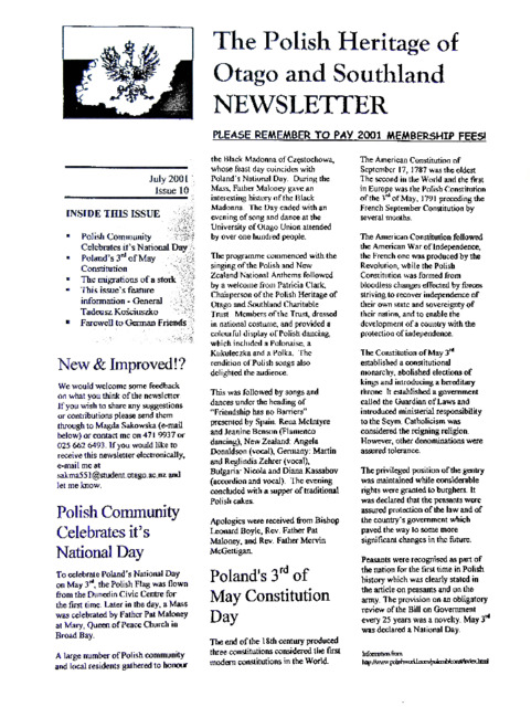 Polish Heritage of Otago and Southland, 2001 No. 10. July